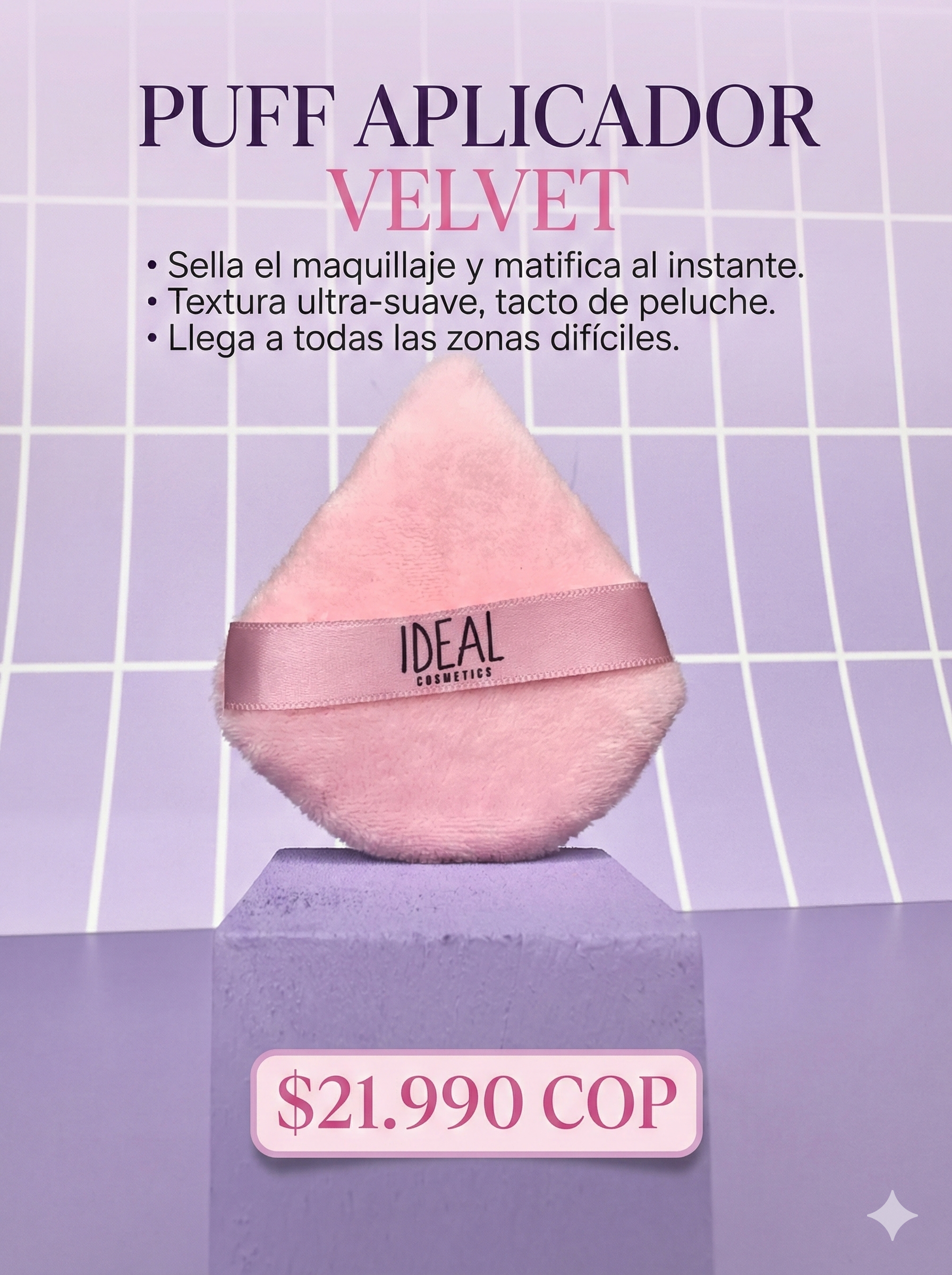 El paso final para un maquillaje blindado. Este puff de tejido exclusivo ultra-suave está diseñado para la técnica de "presión", sellando tu base y corrector para maximizar la duración y lograr un acabado mate sin poros visibles.